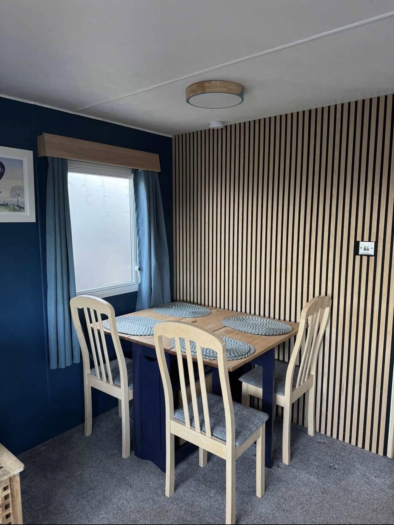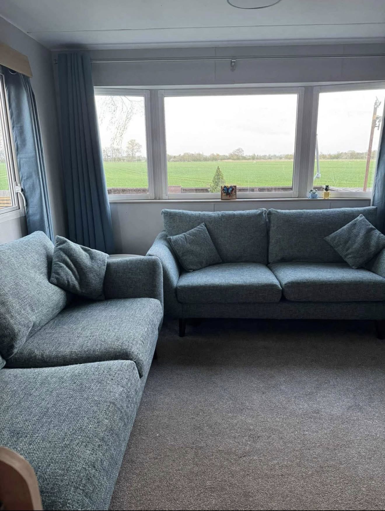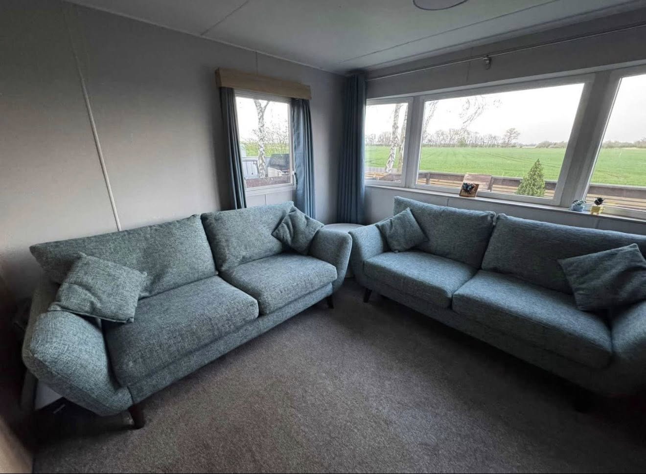 The caravan has been thoughtfully upgraded with double glazing and panel heaters throughout, ensuring warmth and efficiency all year round. The fully equipped kitchen includes a washing machine and a full-size fridge freezer, making longer stays easy and hassle-free.