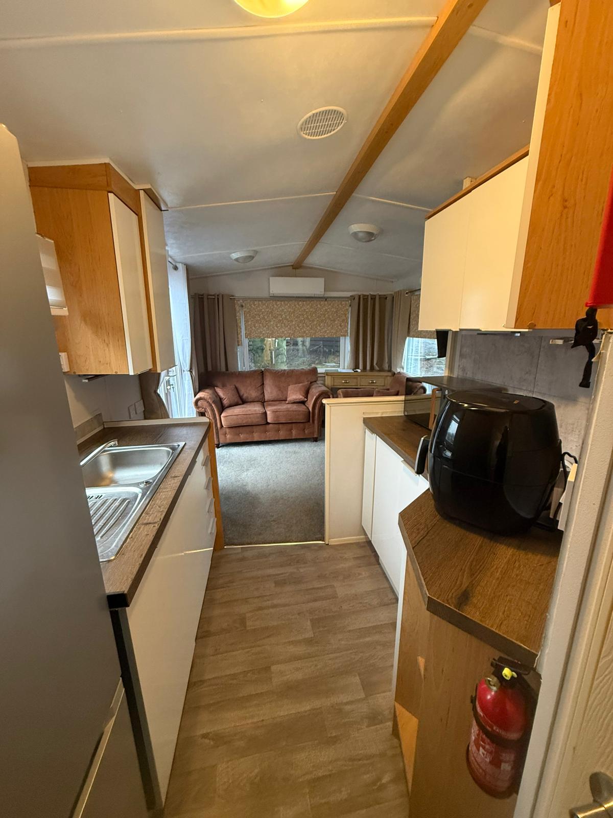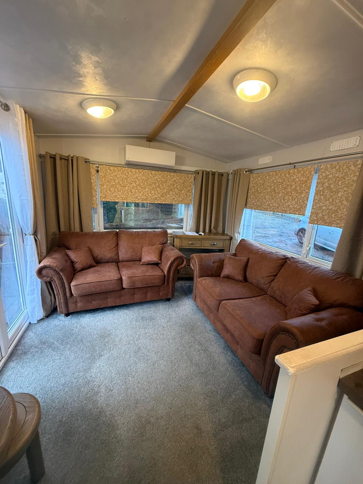 The caravan benefits from a brand-new boiler and a newly fitted air conditioning unit, providing comfort all year round. Inside, there are two large double bedrooms, both fitted with full-size double beds, offering generous sleeping space for family or guests.